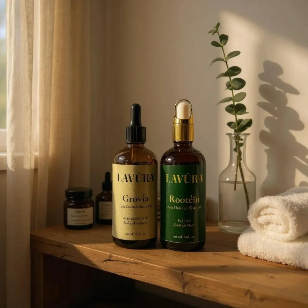 🔸 Grovía – A luxurious blend of growth-activating oils and botanicals, designed to awaken hair follicles, boost volume, and support long-term hair strength.